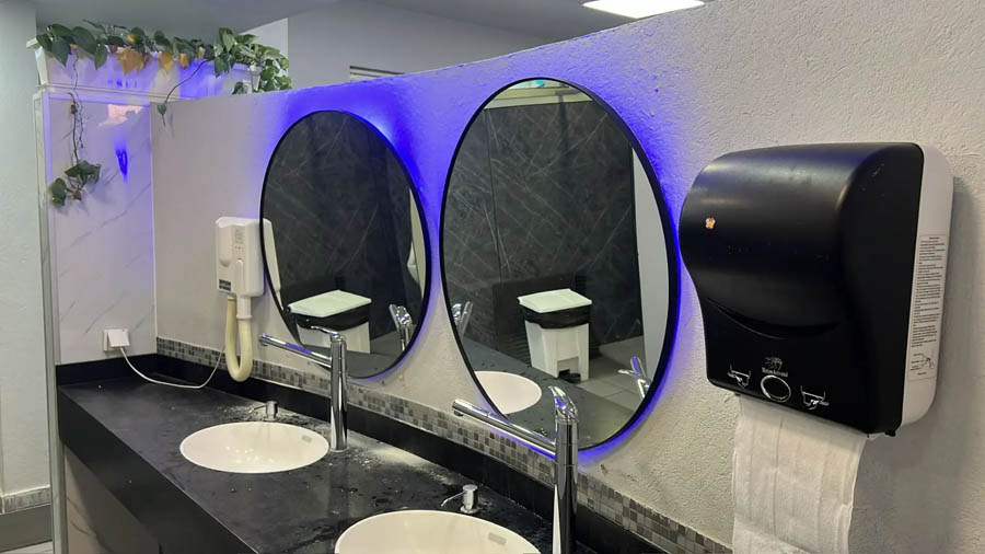 הסביבה הלחה והרטובה של חדר הרחצה מחייבת שימוש בחומרים המיועדים לכך. אנו מקפידים על שימוש במראות עם גב מוגן למניעת קורוזיה (כתמים שחורים), ומבטיחים איטום מקצועי מאחור למניעת חדירת לחות. ניתן לבחור בין מראה "מרחפת" ללא מסגרת, עם ליטוש קנט בטיחותי ואלגנטי, לבין שילוב מסגרות עמידות במים מחומרים כמו אלומיניום או נירוסטה. בנוסף, ניתן לשלב פתרונות פונקציונליים כמו תאורת לד היקפית או מנגנון למניעת אדים.