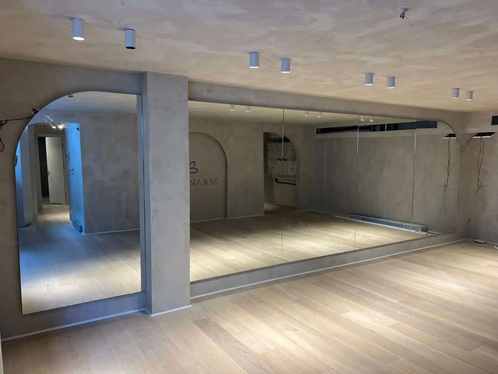 בחללי אימון מקצועיים, המראה היא כלי עבודה חיוני הדורש דיוק ובטיחות ללא פשרות. אנו מתמחים בהתקנת קירות מראה רציפים המעניקים השתקפות אחידה, חדה וללא עיוותים, החיונית למעקב אחר תנועה ויציבה. אנו משתמשים בזכוכית מחוסמת ובטיחותית בעובי מתאים, ומבצעים התקנה יציבה על כל סוגי התשתיות – מקירות בטון ובלוקים ועד בנייה קלה. הדגש המרכזי הוא על יצירת משטח אחיד באמצעות חיבורים מדויקים, מה שמבטיח קו רציף ועמידות גבוהה גם בסביבת אימונים אינטנסיבית.
